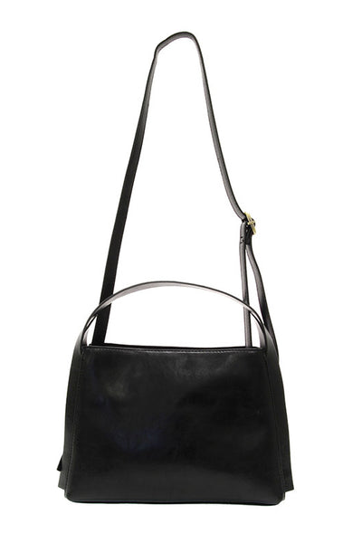 This polished satchel crafted in glossy vegan leather will elevate your daily style. Equipped with three distinct inner compartments; a center zip compartment and two open compartments with magnetic snap closures, this bag will keep you organized with ease. Equipped with demure top handles and a detachable, adjustable shoulder strap, you have multiple carry options to compliment your look.