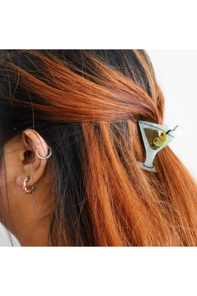 The Mini Martini Hair Claw is ready to shake up your look. Handmade and hand-painted from eco-friendly, plastic-free cellulose acetate, this tiny cocktail clip measures approx 1.75" x 1.5" x 0.75". Each one is totally unique and built to last. A fun little garnish for your hair that’s sustainably made and always ready for happy hour.