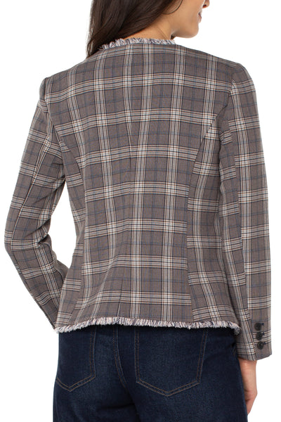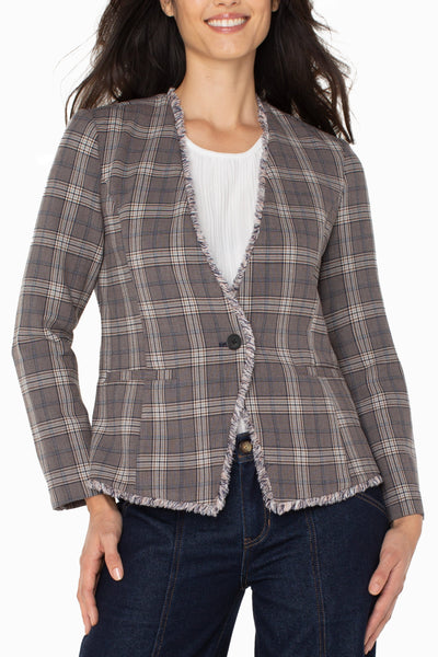Liverpool Los Angeles - Collarless Fitted Blazer with Fray Detail - Brown/Navy Check