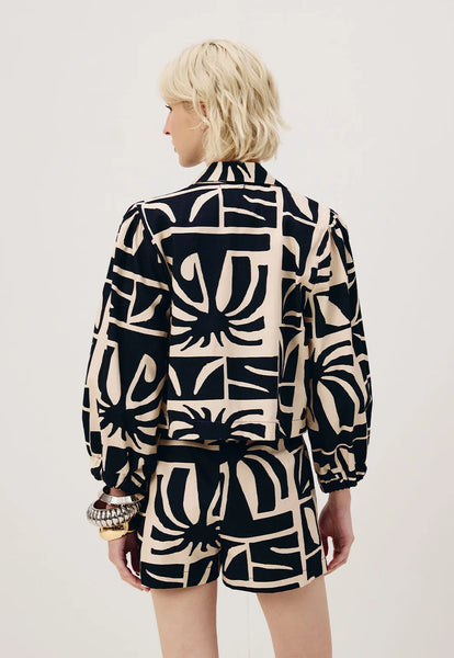 CaCay - Cropped Printed Blazer - Dark Blue
