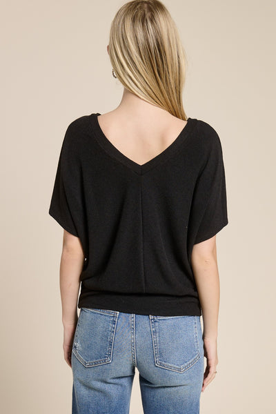 Effortless elegance meets cozy comfort in this Double V Short Sleeve Top. The soft, lightweight knit drapes beautifully with a relaxed dolman silhouette and double V-necklines front and back for a modern, flattering look. A gently fitted hem creates that perfect bloused shape without any fuss.