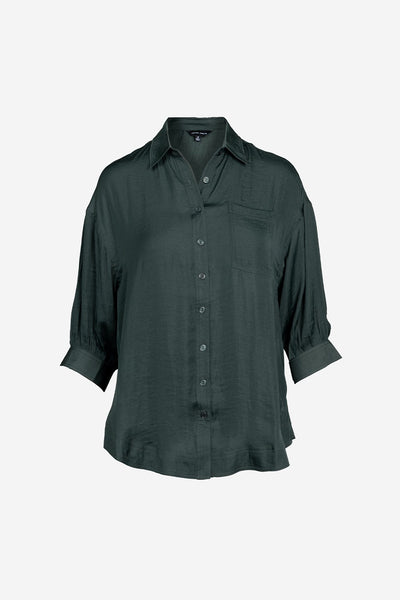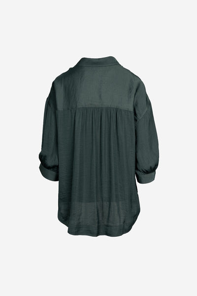 Naked Zebra - Oversized Long Sleeve Button Up Blouse - Forest Green