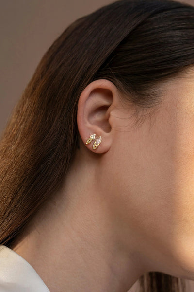 These mini studs may be small, but they drip with edge. Shimmering with raw diamonds and a kiss of champagne pavé, they're balanced in perfect symmetry.