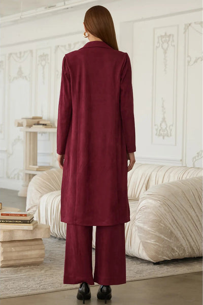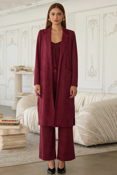 Skies Are Blue - Faux Suede Duster - Burgundy
