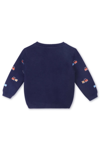 Viverano Organics - Train Embroidered Baby Cardigan - Navy Blue