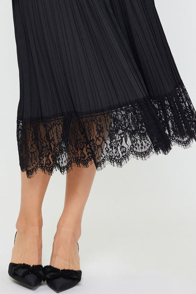 Current Air - Pleated Midi Skirt with Lace Detail - Black