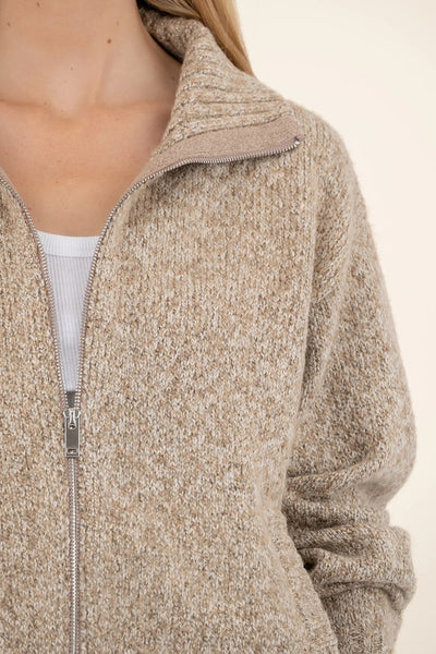 Elevate your cold-weather game with the Coryn Zip Front High Neck Sweater—where cozy meets cool. This soft, touchable knit features a convenient front zipper, making it ridiculously easy to layer or adjust your warmth on the fly. The high neckline adds a modern, polished vibe that works whether you're lounging around or stepping out.