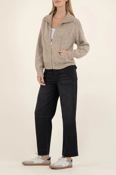 KUT from the Kloth - Coryn Zip Front High Neck Sweater - Stone