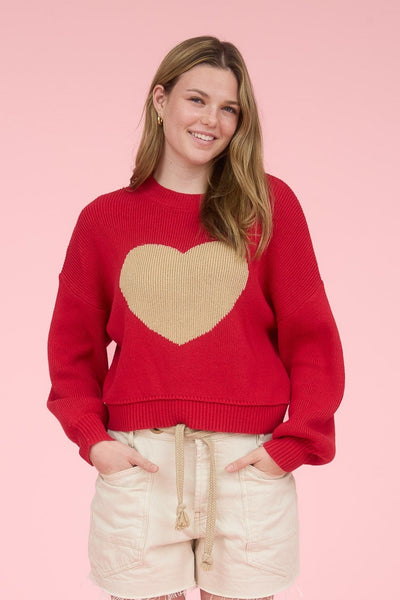 This oversized heart jacquard sweater is your new favorite thing to throw on. With its relaxed fit and dreamy drop shoulders, it's got that "I woke up like this" energy. Cute, comfy, and ready to become your go-to layering piece for everything.