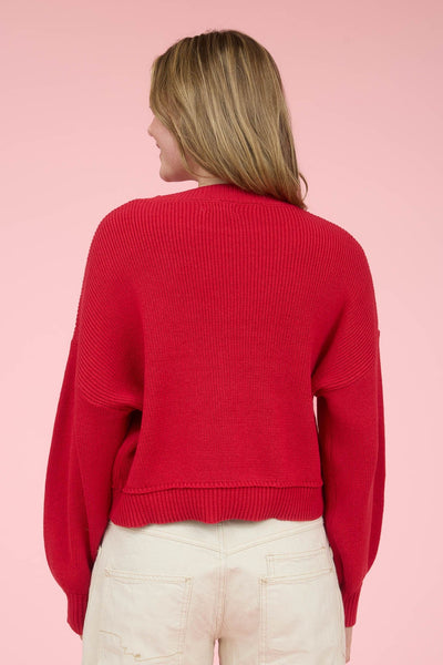 Blu Pepper - Heart Jacquard Crew Neck Sweater - Red
