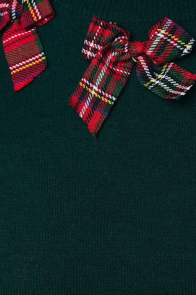 This short sleeve sweater adds a playful twist with its charming plaid bow detail at the crew neck. Cozy and cute, it’s perfect for layering or wearing on its own to brighten up any outfit with a touch of fun flair.