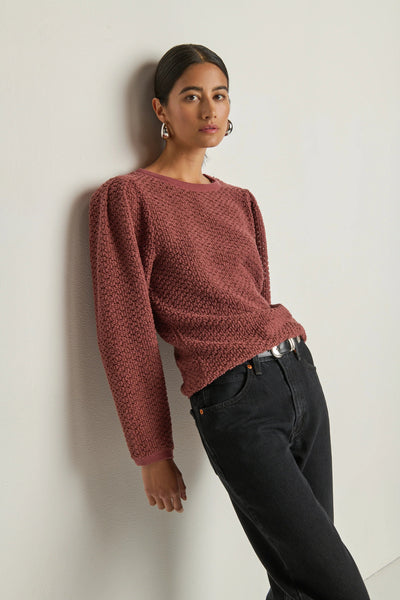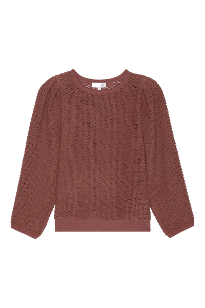 This chunky lace beauty strikes the perfect balance between texture and structure, featuring subtly sculpted shoulders that keep things polished without feeling stiff. The crew neck and long sleeves create a confident silhouette that's equally at home at brunch or the office. It's comfort that doesn't compromise on looking put-together.