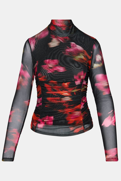 This long-sleeved Taylore Floral Sheer Top features a mock neck design and is made from breathable mesh fabric, offering comfort and style. The artistic floral print brings a modern, elegant touch, perfect for layering or wearing on its own to elevate any outfit with a refined edge.