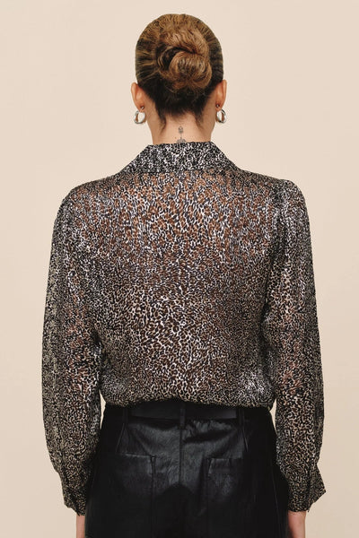 Bella Dahl - Bishop Sleeve Button Up - Silver Leopard