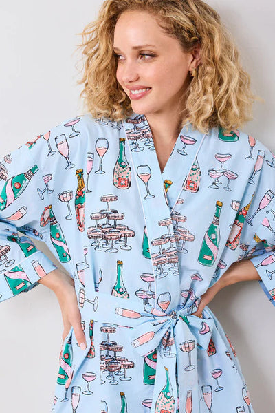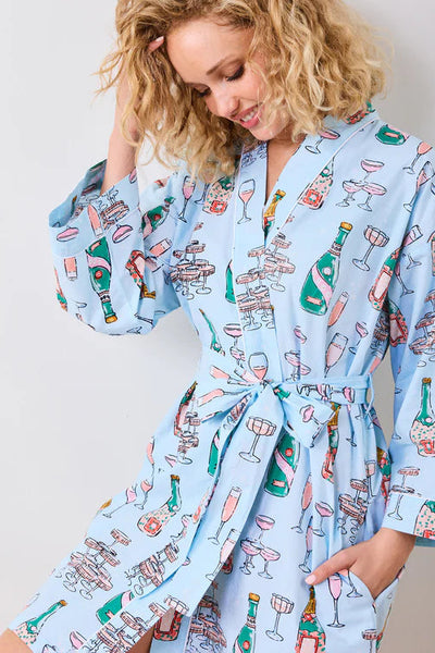 Featuring a fun, quirky print of champagne bottles and glasses, this playful robe brings festive vibes to your loungewear. Soft and comfortable, they’re perfect for sipping your favorite bubbly or just relaxing with a smile. Cheers to sweet dreams and cheerful comfort!