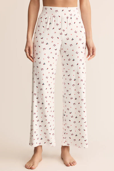 Meet your new favorite excuse to stay home. These wide-leg lounge pants feature a luxuriously soft pointelle knit in a charming seasonal print, paired with a high rise and stretchy waistband for all-day comfort. Whether you're settling in for a cozy night or layering them into your casual rotation, this breezy full-length style proves that comfort never has to feel boring.